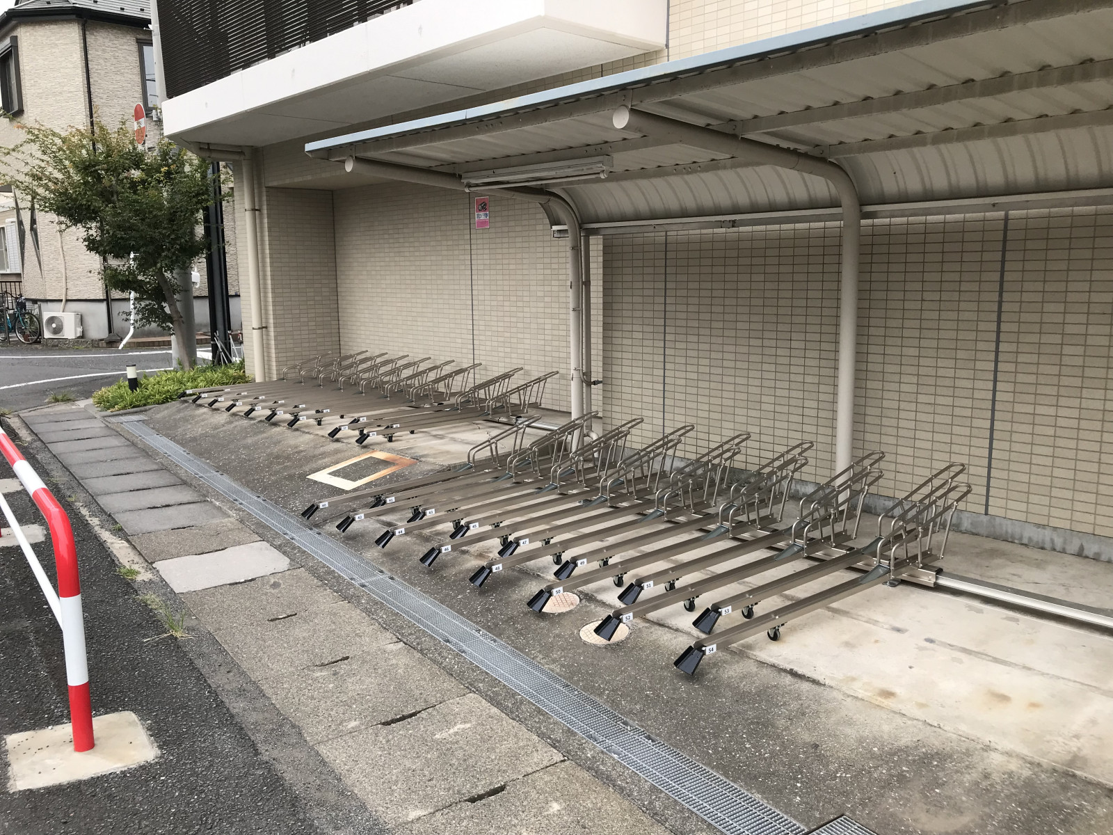 既設の固定式ラック間が大変狭く、子乗せ電動アシスト自転車などの大型自転車が駐輪しづらい、できないと悩まれておられました。