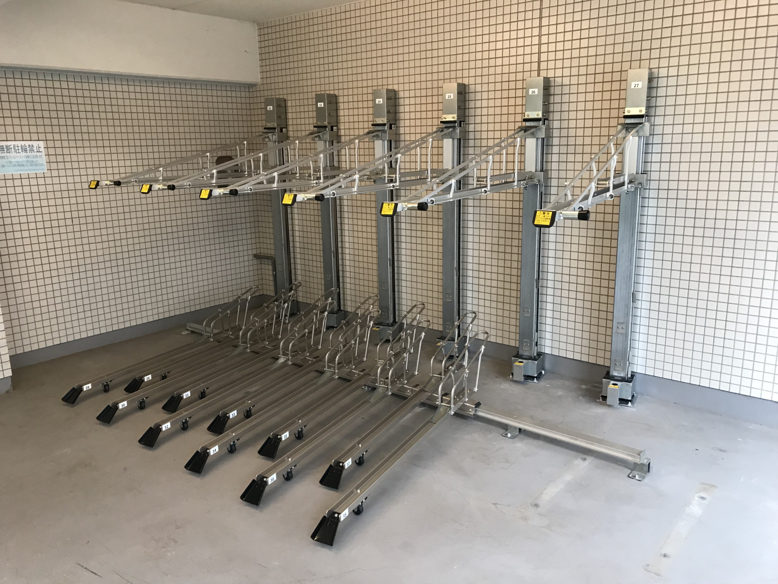 経年劣化とアフターサポート | 東京都 中野区 某所 2024/08/31 Before After 経年劣化による不安解消、駐輪機専門会社による安心のアフターサービス 既設の固定式ラック間が大変狭く、子乗せ電動アシスト自転車などの大型自転車が駐輪しづらい、できないと悩まれておられました。 既設ラックの経年劣化に伴い、既設製造元が駐輪機製造の撤退を知りまして弊社に相談が入った案件になります。永年ご使用する駐輪機はアフター面(部品交換・修繕)も大切です。 そのようなご心配の声が多い中、弊社ではご安心ください。 『餅は餅屋』であるように『駐輪機は駐輪機専門会社』です。